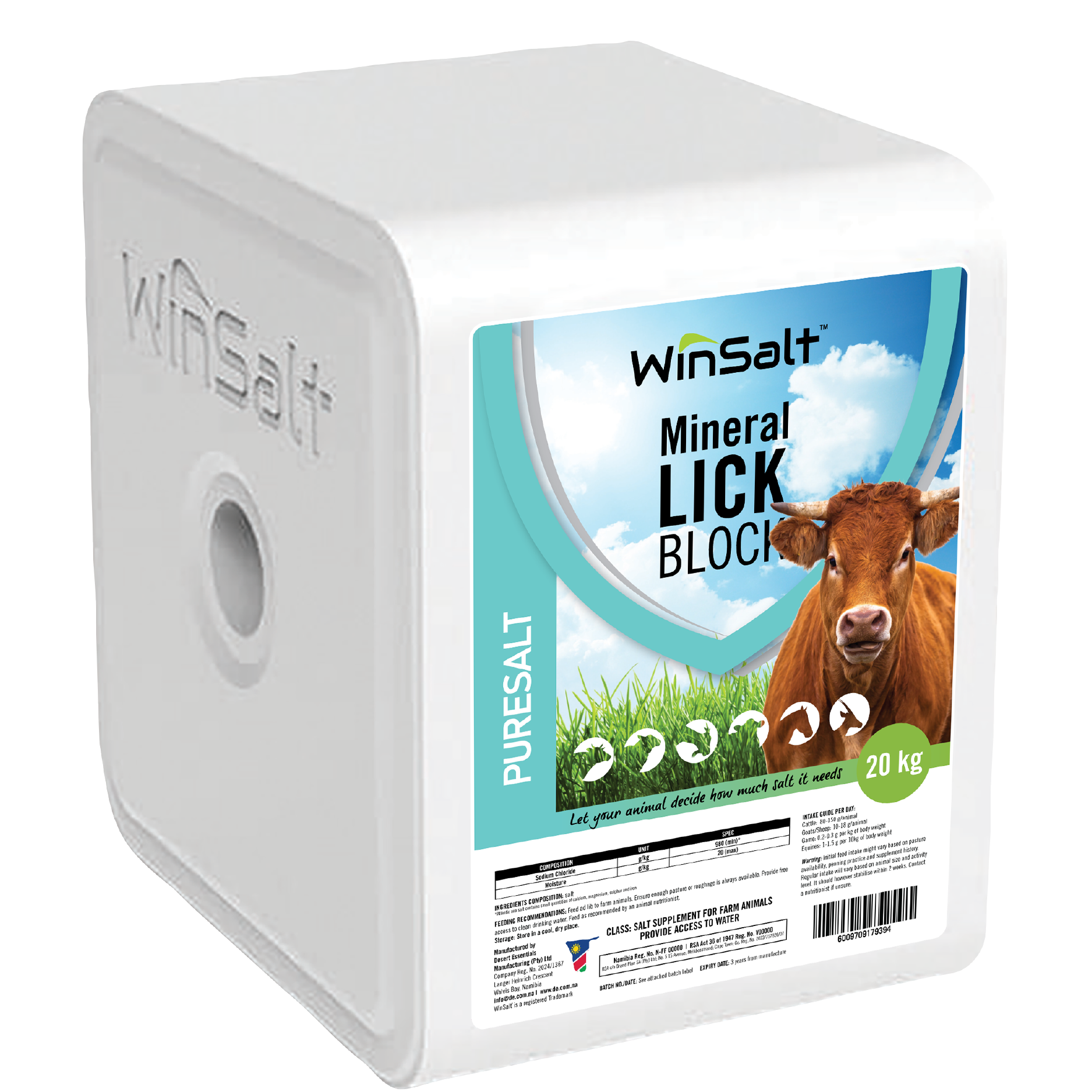 Desert Essentials Manufacturing (Pty) Ltd, established in 2025, is a proudly Namibian company specializing in the manufacture of high-quality salt lick blocks for livestock, game and horses. We also make dishwasher and water softener salt tablets. We use pure, locally sourced solar sea salt and natural minerals to create products that are free from additives, binding agents, and harmful chemicals. Our animal blocks are designed to let livestock self-regulate their mineral intake, supporting health, growth, fertility, and immunity, particularly in areas with mineral-deficient soil and vegetation.